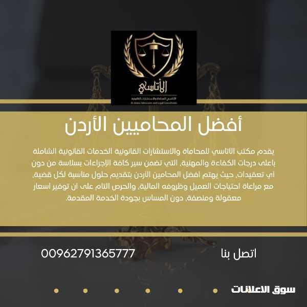 يقدم مكتب الأتاسي للمحاماة والاستشارات القانونية الخدمات القانونية الشاملة بأعلى درجات الكفاءة والمهنية التي تضمن سير كافة الإجراءات بسلاسة من دون أي تعقيدات حيث يهتم أفضل المحامين الأردن بتقديم حلول مناسبة لكل قضية مع مراعاة احتياجات العميل وظروفه المالية والحرص التام على أن توفير أسعار معقولة ومنصفة دون المساس بجودة الخدمة المقدمة