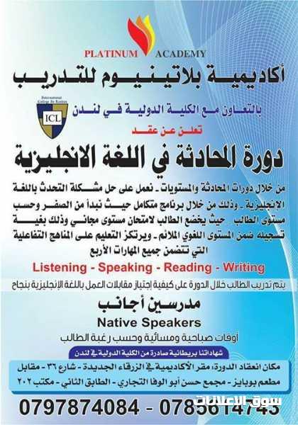 دورات المحادثة في اللغة الاتجليزية في مدينة الزرقاء متخصصون بإعطاء دورات المحادثة في اللغة الانجليزية و دورات اللغة الإنجليزية الشاملة 0785614743